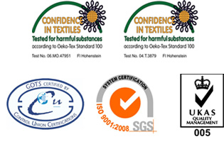 Organik kumaş üretimi için tüm standartlar HOLLANDA CONTROL UNION firması tarafından kontrol edilmiş olup, Turan Tekstil tüm bu aşamaları başarı ile tamamlamış ve GLOBAL ORGANICS TEXTILE STANDARD ( GOTS ) ve ORGANIC EXCHANGE sertifikalarını almıştır.